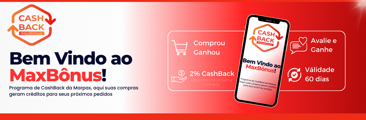 Bem vindo ao Programa de Cashback da Marpax, aqui você pode ganhar entre 2% e 5% do valor do pedido em créditos para a sua próxima compra!